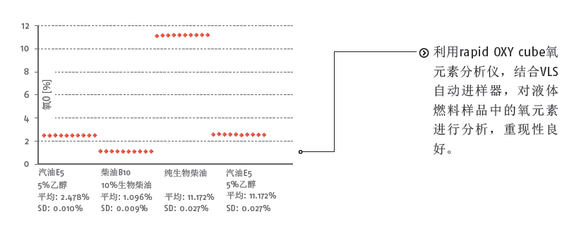 产品介绍 Elementar rapid OXY cube氧元素分析仪 精确的氧元素分析并不复杂。全新的rapid OXY cube完美的满足对氧浓度测量的需求。结合专利的柱吹扫技术,再也不需要担心干扰气体对分析结果的影响。新型rapid OXY cube氧元素分析仪将高准确度和无与伦比的操作舒适性,耐用性完美的融合在一起。 Elementar rapid OXY cube氧元素分析仪主要功能: ·简单易用 ·简化的样品前处理 ·最低的单个样品分析成本 ·氩气作为载气(氦气可选) ·EAS REDUCTOR? 还原管可连续分析1000多个样品 ·分析速度快 (5 min.) ·每天300次样品通量 Elementar rapid OXY cube氧元素分析仪可靠的结果 rapid OXY cube利用其创新性的柱吹扫技术确保了结果的高度可靠。分析结果精确是因为裂解反应器产生的干扰气体全部被排出,可以获得 < ± 0.1%的准确度。